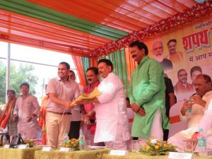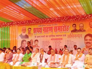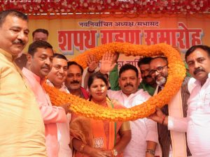 राज्यमंत्री (स्वतंत्र प्रभार) स्टाम्प तथा न्यायालय शुल्क एवं पंजीयन विभाग उ0प्र0 शासन रवीन्द्र जायसवाल ने नगर पालिका परिषद के सामने स्थित आर0टी0एस0 क्लब मैदान में आयोजित नगर पालिका परिषद अध्यक्ष/सभासदांें के शपथ ग्रहण समारोह कार्यक्रम में मुख्य अतिथि के रूप में सम्मिलित हुयें। । स्टाप मंत्री का जिलाधिकारी द्वारा पुष्पगुच्छ देकर स्वागत किया गया। इस मौके पर पार्टी के जनप्रतिनिधिगण, कार्यकर्ताओं व पदाधिकारियों द्वारा बड़े आकार का फूलों का माला पहनाकर कर स्वागत किया गया। नवनिर्वाचित नगर पालिका परिषद अध्यक्ष एवं सभासद पद के शपथ ग्रहण समारोह में उप जिलाधिकारी सदर शैलेन्द्र कुमार मिश्रा ने नवनिर्वाचित नगर पालिका परिषद अध्यक्ष रूबी प्रसाद एवं सभी सभासदों को पद एवं गोपनीयता की शपथ दिलायी। मंत्री जी ने कहा कि अध्यक्ष/समस्त सभासदगण नगर के विकास के लिए बिना भेद-भाव के अपनी अहम भूमिका निभाने का काम करें, जिससे नगर क्षेत्र का सम्पूर्ण विकास हो सके। नगर क्षेत्र को व्यवस्थित करने के लिए एकजुट होकर स्वच्छ, सुन्दर बनाने का कार्य करें, जिससे राबर्ट्सगंज शहर का भरपुर विकास करने के साथ ही सड़क,लाईटें, नालियां आदि सुविधा नागरिकों के लिए उपलब्ध रहें। उन्होंने कहा कि नगर पालिका/नगर पंचायतों के विकास के लिए सरकार धन देने के लिए तैयार है, जरूरत है सहीं तरीके से विकास के लिए प्रस्ताव बनाने की, जिससे पूर्ण रूप से नगर क्षेत्र विकास हो सके, उन्होंने कहा कि नवनिर्वाचितं अध्यक्ष एवं सभासदगण राबर्ट्सगंज के विकास के लिए अपनी अहम भूमिका निभायें। शपथ ग्रहण समारोह के दौरान मंत्री जी ने नवनिर्वाचित अध्यक्ष एवं सभासदगण का आहवान करते हुए कहा कि केन्द्र एवं प्रदेश की सभी योजनाओं का लाभ पात्रों को ईमानदारी, लगन एवं मेहनत से दिलाने व सरकार की नीतियों को जन जन तक पहुॅचाने का हर सम्भव प्रयास करने का संकल्प दिलाया। उन्होने कहा कि केन्द्र और प्रदेश सरकार की योजनाओं को आम जन मानस तक पहुॅचाने के लिये सरकार कटिबद्ध है। नवनिर्वाचित अध्यक्ष एवं सभासद आने वाले पांच वर्षो में बगैर किसी भेदभाव के जनता के बीच पात्र लाभार्थियों को योजनाओं का लाभ पहुॅचायें, नगर का चहुमुखी विकास कर जनता की अपेक्षाओं पर खरा उतरे। शपथ ग्रहण के मौके पर नव निर्वाचित नगर पालिका परिषद अध्यक्ष रूबी प्रसाद द्वारा मंत्री जी के साथ ही सभी मंचासीन अतिथियों का प्रतिमा व अंग वस्त्रम देकर सम्मानित किया गया। वही उन्होंने अपने सम्बोधन में मंचासीन अतिथियों, कार्यकर्ताताओं, पदाधिपकारियों, पत्रकार बन्धुओं व नगर पालिका के कार्मिकों को आभार व्यक्त करते हुए कहा कि प्रधान मंत्री, मुख्यमंत्री के कामों को देखकर जनता ने हमें बिजयी बनाने का काम क