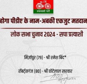 लोकसभा रावस्ट्सगंज सपा प्रत्याशी की हुई घोषणा छोटे लाल खरवार ठोकेंगे ताल,सपा नें जारी की सूची, सोनभद्र