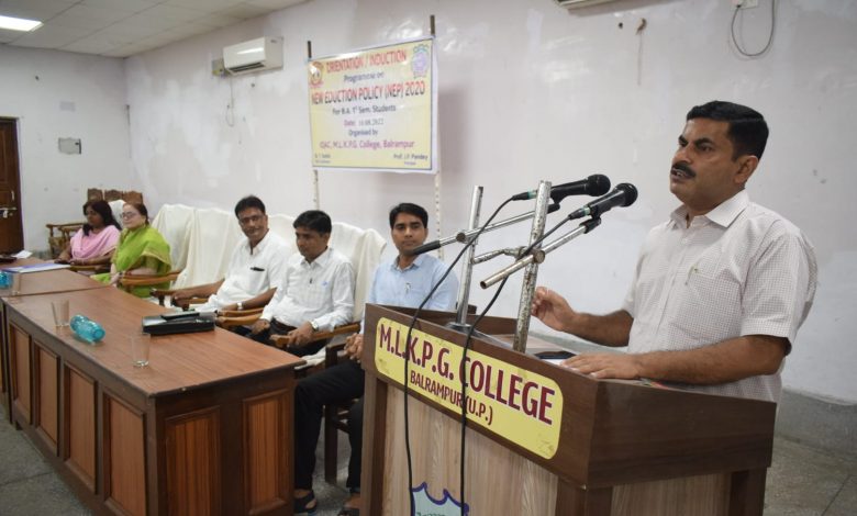 बलरामपुर। एम एल के पी जी कॉलेज बलरामपुर के स्नातक प्रथम वर्ष प्रथम सेमेस्टर के छात्र-छात्राओं की परिचयात्मक बैठक बुधवार को महाविद्यालय के सभागार में सम्पन्न हुई। बैठक में छात्र-छात्राओं को नई शिक्षा नीति 2020 के बारे में विधिवत जानकारी दी गई। कार्यक्रम का शुभारंभ करते हुए महाविद्यालय प्राचार्य प्रोफेसर जे पी पाण्डेय ने कहा कि नई शिक्षा नीति छात्र-छात्राओं के लिए बहुत उपयोगी है।