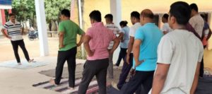 अन्तर्राष्ट्रीय योंग दिवस पर करमा थाना परिसर में पुलिस कर्मियों द्वारा किया गया योगाभ्यास,, सोनभद्र