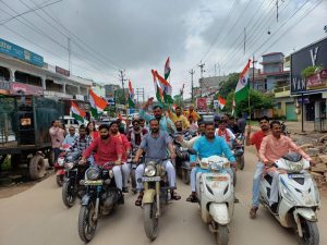 इस मौके पर भाजपा जिलाध्यक्ष नन्दलाल ने कहा कि हर घर तिरंगा – तिरंगा यात्रा विगत वर्षो से पार्टी के कार्यकर्ता सभी जनपदवासियों के साथ मिलकर हर घर पर तिरंगा लगाते है और सबको जागरुक करने के लिए आज भारतीय जनता युवा मोर्चा द्वारा दो विधानसभाआंे मे बाइक रैली के माध्यम से तिरंगा यात्रा निकाला गया है। आने वाले 15 अगस्त को गरीब या अमीर हो छोटा घर या बड़ा घर हो हर कोई तिरंगा लहराकर गर्व का अनुभव करता है तिरंगे के साथ सेल्फी लेकर सोशल मिडिया पर पोस्ट करने का भी सभी मे उत्साह दिखायी देता है। जब कालोनी या सोसाइटी के एक एक घर पर तिरंगा लहराता है तो देखते ही देखते दूसरे घरो पर तिरंगा दिखने लगता है। यानि हर घर तिरंगा अभियान तिरंगे के शान मे एक बेहतरीन त्यौहार के रुप मे बन चुका है। इसे लेकर अब तो तरह तरह के कार्यक्रम भी होने लगे है। 15 अगस्त आते आते घर मे दफ्तर मे कार मे तिरंगा लगाने के लिए तरह तरह के प्रोडक्ट बाजार मे दिखने लगते है इस कार्यक्रम के प्रति लोगो मे इतना उत्साह है कि तिरंगा अपने दोस्तो और पड़ोसियो को बांटते है तिरंगे को लेकर उल्लास ये उमंग हमे एक दूसरे से जोड़ती है।