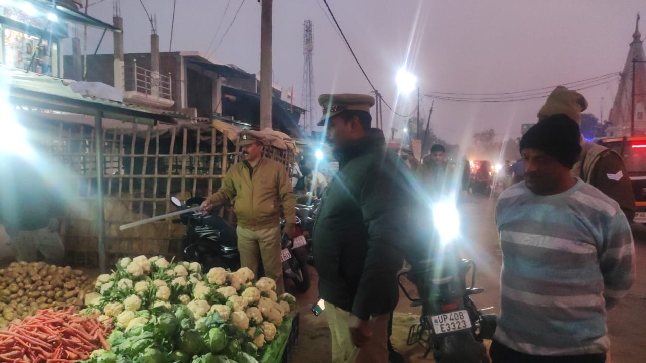 पयागपुर चौराहे पर लगातार हो रहे अतिक्रमण को हटवाते हुए थाना अध्यक्ष पयागपुर