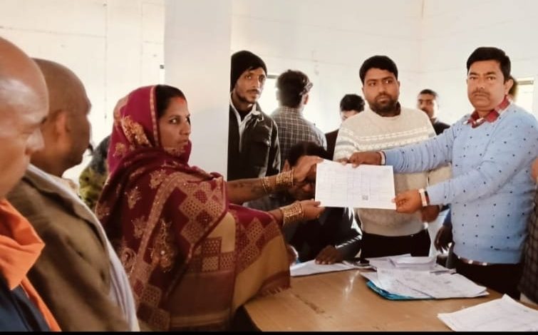 ग्रामीणों को बाटा गया घरौनी प्रमाण पत्र, खिले चेहरे