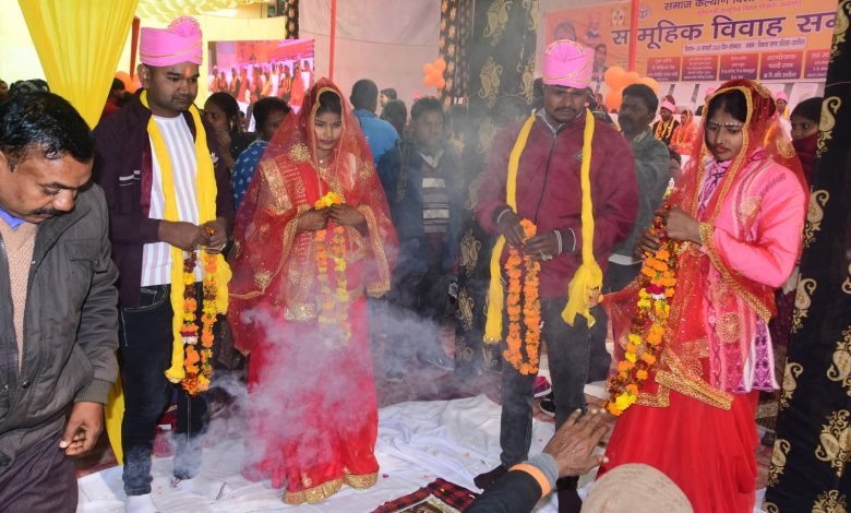 सामूहिक विवाह कार्यक्रम धार्मिक रीति-रिवाज से कुल 95 जोड़ों का विवाह सकुशल सम्पन्न