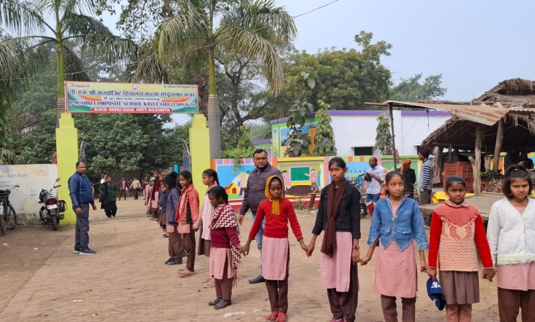 पीएम श्री कंपोजिट विद्यालय कन्या सादुल्लानगर में मानव श्रृंखला निकाल कर सड़क सुरक्षा सप्ताह मनाया गया