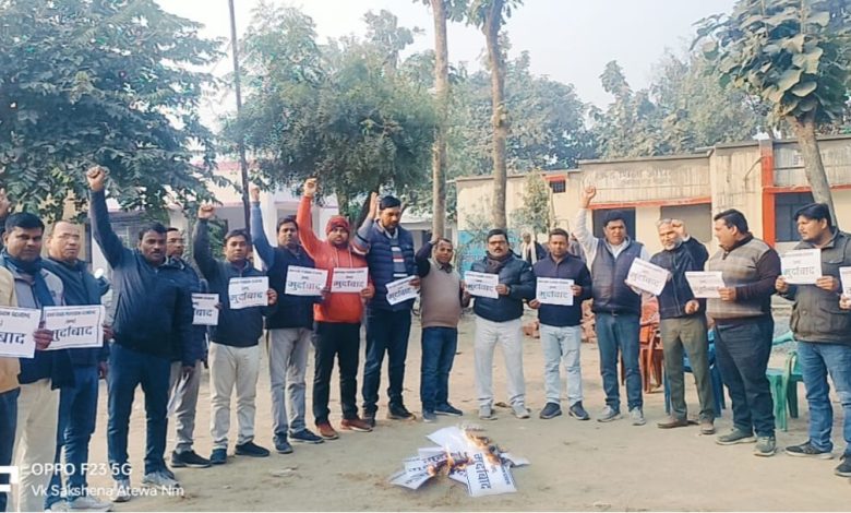 डुमरियागंज में शिक्षकों ने यूपीएस एनपीएस लिखी पर्चियों का किया दहन