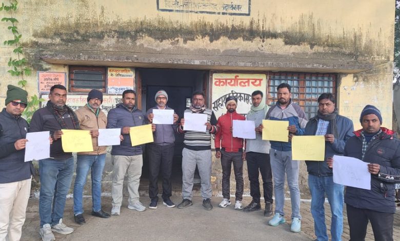 लोटन में सफाईकर्मियों द्वारा एनपीएस और यूपीएस के विरोध में प्रदर्शन
