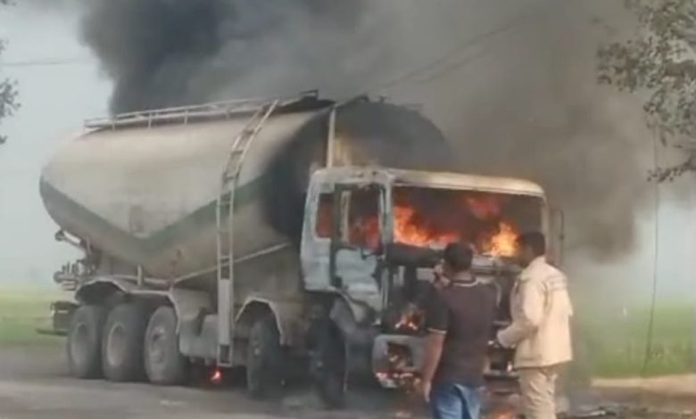 खड़ी फ्लाई ऐश टैंकर में धू-धू कर जल रहे वीडियो सोशल मीडिया पर हो रहा वायरल