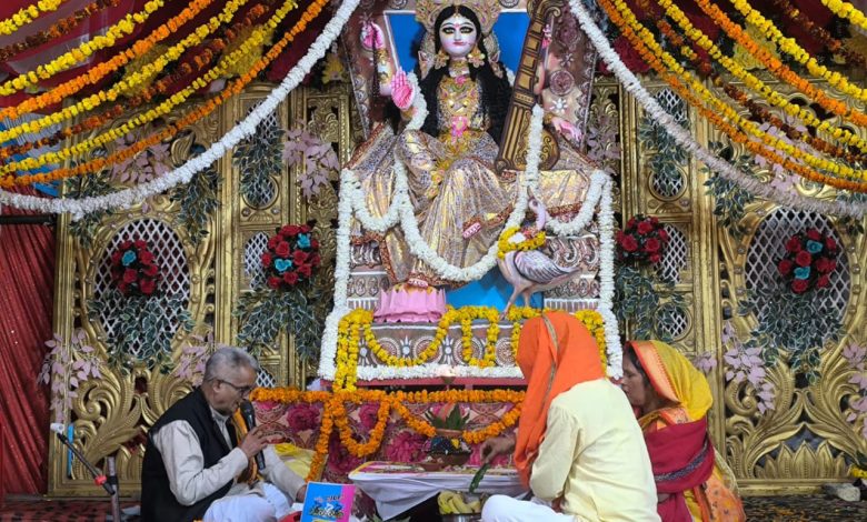 पयागपुर में बसन्तोत्सव पर सजा माँ सरस्वती का दरबार