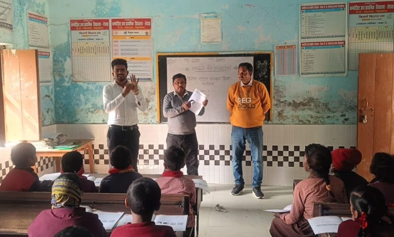 लेदवा विद्यालय में शिक्षक राकेश कुमार राज ने दी स्वच्छता की जानकारी