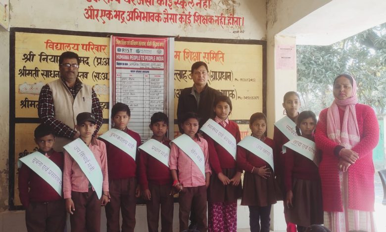सिद्धार्थनगर। शुक्रवार को सदर ब्लॉक नौगढ़ के अन्तर्गत संचालित प्राथमिक विद्यालय झंडे नगर में बाल संसद की विशेष बैठक आयोजित की गई। बैठक में बतौर मुख्य अतिथि उपस्थित हुए ह्यूमाना पीपुल टू पीपुल संस्था के समन्वयक राजेन्द्र शर्मा ने बच्चों को विभिन्न रोचक खेल गतिविधियों को सिखाकर पढ़ने और बढ़ने हेतु प्रेरित किया। विज्ञान आधारित तथ्यों पर आधारित चमत्कारी ट्रिक्स और हाथ की सफाई आदि देखकर बच्चे खूब आनंदित हुए। प्रधानाध्यापक नियाज़ अहमद और सहायक अध्यापिका साधना श्रीवास्तवा ने बच्चों को वार्षिक उत्सव में प्रस्तुति के लिए सांस्कृतिक कार्यक्रमों की तैयारी कराई। इस अवसर पर प्रेमा देवी, अभिषेक मणि, सागर, रूबीना, राम अवतार, रितेश ओम, जय तथा आरती आदि द्वारा प्रस्तुत कार्यक्रम खूब सराहे गए।