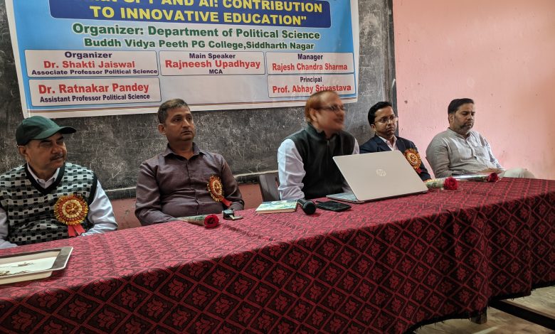सिद्धार्थनगर। बुद्ध विद्यापीठ पी.जी. कॉलेज सिद्धार्थ नगर के राजनीति विज्ञान विभाग के तत्वावधान में शैक्षिक नवाचार में चौट जीपीटी और ए.आई .की भूमिका पर विद्यार्थियों के लिए कार्यशाला का आयोजन किया गया। इस कार्यक्रम में मुख्य वक्ता रजनीश उपाध्याय जी (एमसीए एवं कंप्यूटर विशेषज्ञ) रहे। कार्यक्रम के मुख्य अतिथि प्रबंधक राजेश चंद्र शर्मा, अनिल मित्तल जी (चार्टर्ड अकाउंटेंट) रहे। रजनीश उपाध्याय ने बताया कि आर्टिफिशियल इंटेलिजेंस हम सभी के दैनिक जीवन में शिक्षा, स्वास्थ्य, कृषि, मनोरंजन सभी क्षेत्र से जुड़ चुका है। चौट जीपीटी आर्टिफिशियल इंटेलिजेंस का एक पार्ट है, जिसकी शुरुआत 2018 में अमेरिकन संस्थाओं के द्वारा किया गया और आज शिक्षा क्षेत्र में बच्चों और शैक्षणिक जगत के लिए एक नवाचार टूल के तौर पर प्रचलन में है। आर्टिफिशियल इंटेलिजेंस के क्रम में बच्चों को जैमिनी, अलेक्सा, वॉइस टेक्स्ट ट्रांसफार्मर , चौट जीपीटी के व्यावहारिक और सरल प्रयोग से अवगत कराया गया। महाविद्यालय के प्रबंधक राजेश चंद्र शर्मा ने बताया कि आर्टिफिशियल इंटेलिजेंस के राष्ट्रीय अंतरराष्ट्रीय महत्व पर बात रखी, उन्होंने बताया कि भारत सरकार वर्तमान में बड़ी धनराशि इसके प्रमोशन के लिए खर्च कर रही है और बहुत जल्द ही भारत अपना आर्टिफिशियल इंटेलिजेंस बनाने में सक्षम हो सकेगा। कार्यक्रम के संयोजक एवं संचालक एसोसिएट प्रोफेसर राजनीति विज्ञान विभाग डॉ शक्ति जायसवाल ने बताया कि गूगल सर्च इंजन पुरानी चीज हो गई है, आर्टिफिशियल इंटेलिजेंस के कई सारे नए टूल्स लोगों को निशुल्क उपलब्ध है ,जिसका प्रयोग करके बच्चे अपने स्टडी मैटेरियल को समृद्ध कर सकते हैं। जहां गूगल सर्च इंजन का प्रयोग करने पर कई सारे लिंक मिल जाते हैं, जिसमें बच्चों को कन्फ्यूजन बना रहता है ,वही नए आर्टिफिशियल इंटेलिजेंस के टूल्स का विश्लेषण और सूचनाए, डाटा कहीं अधिक सटीक सहज और ग्राह्य है। असिस्टेंट प्रोफेसर इतिहास विभाग नसरुल मुस्तफा जी ने वार्ता के क्रम में बताया कि आर्टिफिशियल इंटेलिजेंस से नई चुनौतियां भी सामने आ रही है, सबसे बड़ी चुनौती यह है कि हम लोग तकनीक पर हद से ज्यादा आश्रित हो चुके हैं, मानवीय ज्ञान सोचने की शक्ति कमजोर हो रही है। महाविद्यालय के प्राचार्य प्रोफेसर अभय श्रीवास्तव ने इस कार्यक्रम को सफल बनाने के लिए राजनीति विज्ञान विभाग का आभार व्यक्त किया। उन्होंने बताया कि क्योंकि तकनीक इंसानों के द्वारा बनाई गई है अतः आर्टिफिशियल और नेचुरल इंटेलिजेंस की लड़ाई में हमेशा नेचुरल इंटेलिजेंस को एक्टिव होकर जीतना ही होगा। इस कार्यक्रम में असिस्टेंट प्रोफेसर राजनीति विज्ञान विभाग डॉक्टर रत्नाकर पांडे, प्रोफेसर भारत भूषण द्वि