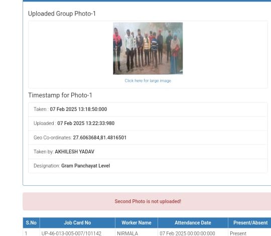 बहराइच | मनरेगा कार्य में भ्रष्टाचार का खेला हो रहा है जानकरके लोग अनजान बन रहे हैं तथा सरकारी धन की बड़े पैमाने पर लूट की जा रही है वह भी बाकायदा सिस्टम से कि किसी को भनक ना लगे ; साथ ही साथ उत्तर प्रदेश सरकार के विकास कार्यो की धज्जिंया उड़ाई जा रही हैं | मिली जानकारी अनुसार जनपद बहराइच के विकास खण्ड तेजवापुर के ग्राम पंचायत मैगला का मामला प्रकाश में आया है जहां पर 14 दिन पूर्व मनरेगा के तहत साइड पर कम मजदूर कार्य कर रहे थे तथा 47 के करीब फर्जी मजदूर कागज पर कार्य कर रहे थे | ग्राम पंचायत मैगला में मनरेगा योजना में बन्दर बांट का सिलसिला जारी है जिसमें मनरेगा योजना में रोजगार सेवक से लेकर ग्राम सचिव व ग्राम प्रधान मिल कर भ्रष्टाचार करके अपना अपना उल्लू सीधा कर रहे हैं और मोटी रकम की कमाई कर रहे हैं | मनरेगा के मास्टर रोल में पुरुषों के साथ में महिलाओं का भी अटेंडेंस लगाया गया लेकिन सबसे बड़ी बात यहां पर यह दिखाई पड़ रही है कि जो फोटो अपलोड की गई है उसमें केवल पुरुष ही दिखाई पड़ रहे हैं महिला एक भी दिखाई नहीं पड़ रही है | सचिव मामले से अनजान बन रहे हैं जबकि मास्टर रोल में फोटो अपलोड सचिव के द्वारा ही दिखा रहा है और यहां तक विश्वस्त सूत्रों के अनुसार सचिव अखिलेश यादव कह रहे हैं कि मेरा कोई कुछ नही कर सकता क्योंकि उपर से नीचे तक कमीशन जाता है | कमीशन वाले खेल द्वारा सरकार के द्वारा दी जा रही विकास योजनाओं को भली भांति न्यूनतम पायदान पर रखने का कार्य अच्छे ढंग से क्रियान्वयन किया जा रहा है | अब देखना है कि प्रशासन इस पर कार्रवाई करेगा या इसे ठंडे बस्ते में डाल देगा |
