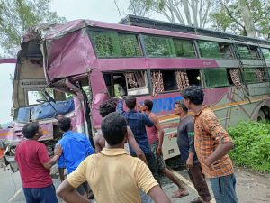 बस व ट्रक में भिड़ंत 2दर्जन यात्री घायल, सोनभद्र