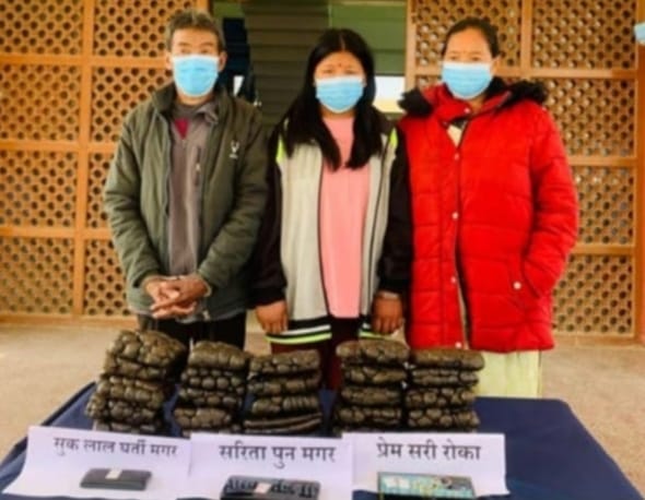 कपिलवस्तु/नेपाल। पड़ोसी देश नेपाल के जिला कपिलवस्तु अन्तर्गत कृष्णानगर पुलिस द्वारा दोपहर को यात्री गेट पर तीन नेपाली अभियुक्तों के पास से करीब 15 किग्रा चरस बरामद किया गया है। आपको बता दें कि मादक पदार्थ तस्कर/कैरियरों के विरुद्ध मादक पदार्थ प्रतिषेध अधिनियम का मुकदमा दर्ज कर उन्हें जिला न्यायालय कपिलवस्तु भेजा गया। वहीं नेपाल प्रहरी ने अग्रिम अनुसंधान के लिए अभियुक्तों को 10 दिनों के रिमाण्ड पर लिया है। नेपाल के कृष्णानगर के यात्री गेट के रास्ते भारत आ रहे तीन नेपाली लोगो की स्थिति संदिग्ध देख नेपाल प्रहरी के जवानों ने उन्हें रोका। संदिग्ध लोगों की तलाशी के दौरान उनके पास से करीब 15 किलो मादक पदार्थ (चरस) बरामद हुआ। वहीं कृष्णानगर इलाका पुलिस कार्यालय के इंस्पेक्टर सूरज खत्री ने बताया कि दोपहर करीब 2 बजे कृष्णानगर, वार्ड 2 के यात्री गेट के रास्ते नेपाल से भारत की ओर जा रहे तीन संदिग्ध लोगों दो महिलाओं और एक पुरुष को चेकिंग के लिए रोका गया, जिसमें कपिलवस्तु जिले के शिवराज नगरपालिका-१ निवासी 66 बर्षीय शुकराज घर्ती, कुशवांग, थवांग गांवपालिका-5, जिला रोल्पा की 49 वर्षीय प्रेम सरिरोका, रुकुम पूर्व के भूमे गांवपालिका 2, काक्री की 26 वर्षीय सरिता पुन शामिल हैं। इंस्पेक्टर के अनुसार प्रेम सरिरोका के पास से 5 किलो 968 ग्राम, सरिता पुन के पास से 5.678 ग्राम तथा शुकराज घर्ती के पास से 3.128 ग्राम चरस बरामद किया गया है। कपिलवस्तु (नेपाल) पुलिस के प्रवक्ता व इंस्पेक्टर माधव विश्वकर्मा ने बताया है कि तस्करो ने कपड़े का बेल्ट जैसा बनाकर उसमें चरस छुपाकर कमर में बांध रखा था। अभियुक्तों के पास से तीन मोबाइल फोन भी बरामद किया गया है। गिरफ्तार अभियुक्तों के विरुद्ध मादक पदार्थ प्रतिषेध अधिनियम का केस दर्ज कर उन्हें जिला न्यायालय भेज दिया गया। कोर्ट ने गहन पूछताछ के लिए अभियुक्तों को 10 दिनों के रिमाण्ड पर दे दिया है।