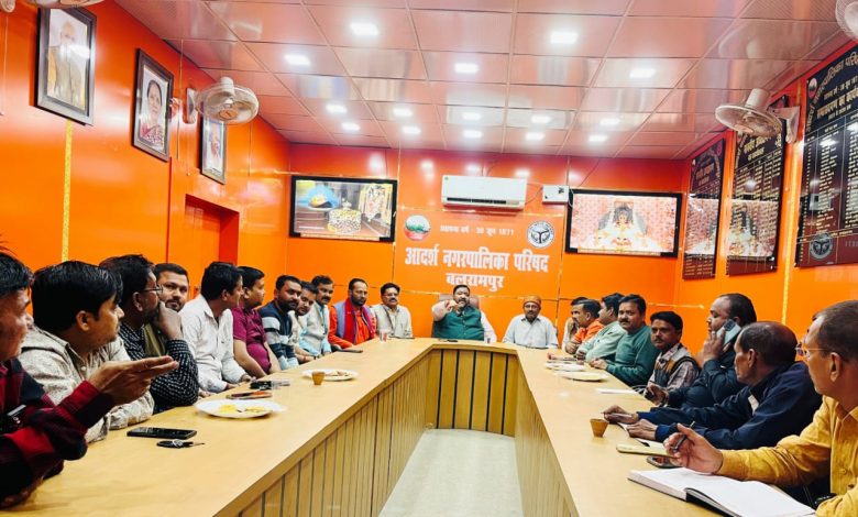 बलरामपुर। आदर्शनगर पालिका परिषद के सभागार में सभासदों एंव कर्मचारियों से विचार-विमर्श कर त्यौहारों पर करायेंगे व्यवस्थाओं से बेहतर सुविधाएं उपलब्ध कराने के निर्देश दिए गये। उक्त अवसर पर अध्यक्ष प्रतिनिधि डीपी सिंह बैस,सभासद संजय मिश्रा,राघवेन्द्र कान्त सिंह मंटू, सुभाष पाठक,नंदलाल तिवारी,अक्षय शुक्ला, शब्बर,कुमैल खान,सिद्धार्थ साहू,मनोज साहू सुशील साहू,मनोज यादव,राजेश कश्यप,शुभम चौधरी,शमशाद,शमीम,आनंद किशोर गुप्ता,मनोज चौरसिया एंव कर्मचारीगण उपस्थित रहे।