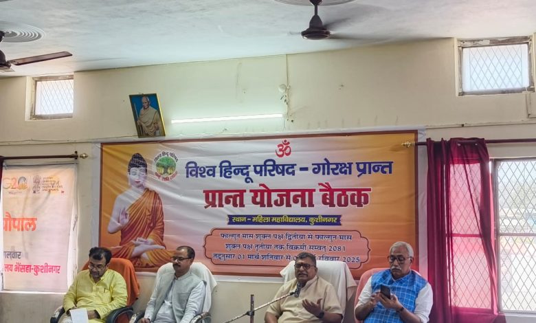 सिद्धार्थनगर। विश्व हिन्दू परिषद प्रान्त योजना बैठक में सिद्धार्थनगर के सुनील त्रिपाठी को जिला उपाध्यक्ष, जय प्रकाश गुप्ता को जिला सहमंत्री, शर्मिला अग्रहरि को दुर्गा वाहिनी संयोजिका की घोषणा संगठन महामंत्री मिलिन्द, क्षेत्र संगठन मंत्री गजेंद्र, प्रान्त संगठन मंत्री राजेश व अन्य उच्च अधिकारियों की उपस्थिति में प्रान्त मंत्री नागेंद्र द्वारा की गई। उक्त जानकारी देते विहिप के जिलाध्यक्ष ब्रजेश पाण्डेय ने बताया कि संगठन की दो दिवसीय शनिवार व रविवार को योजना बैठक कुशीनगर में आहूति की गई थी, जिसमे सर्वसम्मिति से उक्त पदाधिकारियों के दायित्वों की घोषणा की गयी। इससे पूर्व बैठक में पूरे गोरक्ष प्रान्त का संगठनात्मक समीक्षा की गई तथा संगठन के बेहतर कार्य को आगे बढ़ाने के लिए योजना भी बनाई गई। विश्व हिन्दू परिषद एक ऐसा संगठन है जो सामाजिक समरसता बनाने, संस्कार बनाने और अपने सनातन धर्म के रक्षा को लेकर कार्य करती है, उक्त पदाधिकारियों के संगठन में दायित्व दिए जाने से संगठन को मजबूती मिलेगी। इस दौरान संगठन के जिला मंत्री शिवा जी ने नव दायित्वधारियों को शुभकामना देते हुए कहा कि नई ऊर्जा के साथ सँगठनात्म कार्याे में बेहतर परिणाम आएगा। बजरंग दल के जिला संयोजक सुरेश गुप्ता ने कहा कि नव दायित्वधारियों के संगठन में आने से संगठन को मजबूती मिलेगी।