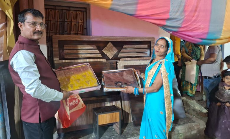 कुशीनगर/दुदही। कन्यादान में सहयोग करके समाज में फैलती जा रही अपसंस्कृति को रोका जा सकता है, गरीब माँ बाप बेटी बहन की शादी समय से नहीं कर पाते हैं जिनसे समाज मे तमाम विसंगतियों का जन्म होता है ऐसे में सनातन परंपरा और संस्कृति को बचाऐ रखने की जरूरत है कि बहन बेटियों की शादी समय पर की जाएं कोई बहन बेटी माता पिता पर बोझ न बने इस लिए आवश्यक है कि सक्षम समाज इस प्रकार आगे आकर कन्यादान में सहयोग करे। उक्त बातें नगर पंचायत दुदही के वार्ड नंबर 12 में आयोजित एक शादी समारोह में समाजसेवी ज्ञानप्रकाश जायसवालश् मुन्ना ने कही। श्री मुन्ना ने शादी समारोह में बेटी को अपनी ओर से साठ हजार की लागत के फर्नीचर सेट उपहार दिया और हर संभव मदद देने का भरोसा भी दिलाया। बताते चले कि समाजसेवी ज्ञानप्रकाश जायसवालश् मुन्ना ने गत माह अपनी माताजी की आत्मा की शांति के लिए श्रद्धांजलि सभा का आयोजन कर सैकड़ों विधवा महिलाओं को साड़ी और अन्य वस्त्र प्रदान कर एक नयी परंपरा की नींव डालने का काम किया था। और नगर पंचायत दुदही के गांधी चौक, थाना परिसर, रेलवे स्टेशन, रामजानकी मंदिर अटल नगर शिव पार्वती मंदिर आदि सार्वजनिक स्थलों पर लोगों की सुविधा के लिए बैठने के बेंच लगवाने का काम किया है। उन्होंने बताया कि बेटियों की शादी में सहयोग के क्रम में ऐसे गरीब परिवारों की मदद करने का संकल्प लिया है और यह ऐसी जरूरत है जिसमें समाज के सभी लोगों को जरूरत मंद लोगों की मदद करनी चाहिए। इस अवसर पर अमित जायसवाल, अनिल सोनकर, मनोज कुंदन, अनिल जायसवाल, विनोद पटेल, संजय जायसवाल आदि मौजूद थे।