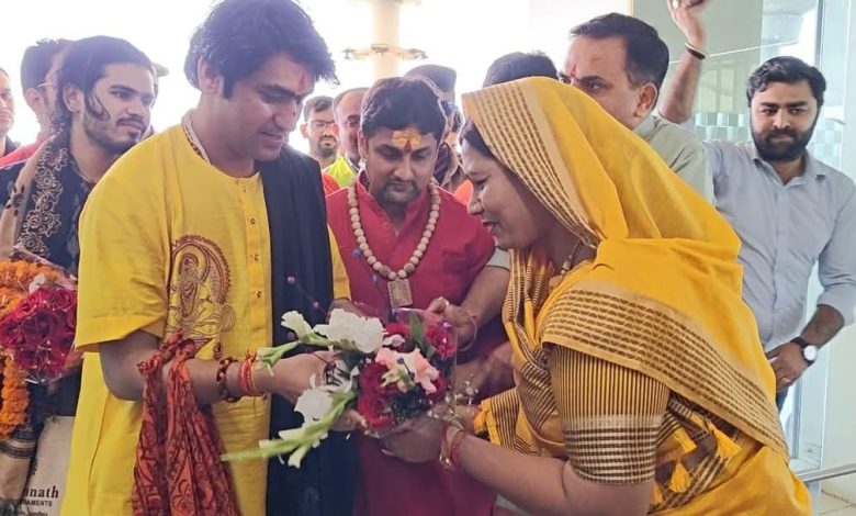 कुशीनगर एयरपोर्ट पहुंचे धीरेंद्र कृष्ण शास्त्री, हुआ भव्य स्वागत