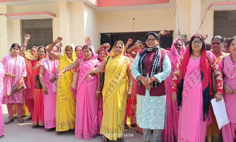 सीडीपीओ के विरुद्ध आंगनबाड़ी कार्यकर्ताओं ने दिया धरना