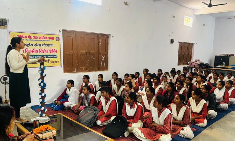 बस्ती। महिला पी जी कॉलेज बस्ती में राष्ट्रीय सेवा योजना की सात दिवसीय विशेष शिविर के द्वितीय दिवस में आज बौद्धिक सत्र में महिला सशक्तिकरण में शिक्षा की भूमिका विषय पर गोष्ठी आयोजित की गई जिसमे मुख्य अतिथि अंजली शर्मा सहायक जिला सेवा योजन अधिकारी बस्ती व कार्यक्रम अध्यक्ष प्राचार्या प्रो सुनीता तिवारी ने कार्यक्रम का शुभारंभ मां सरस्वती की प्रतिमा पर माल्यार्पण व दीप प्रज्ज्वलित कर किया । मुख्य अतिथि अंजली शर्मा ने स्वयं सेविकाओं को संबोधित करते हुए कहा कि महिला सशक्तिकरण में शिक्षा की भूमिका महत्वपूर्ण है, सरकार भी महिला शिक्षा को बढ़ावा देने के लिए निरंतर प्रयास कर रही है,महिलाओं को रोजगार के अवसर प्रदान करने हेतु निरंतर प्रयास कर रही है।कमजोर वर्ग की छात्राओं हेतु नि शुल्क सिविल सेवाओं की कोचिंग,महिलाओं को रोजगार परक प्रशिक्षण प्रदान कर रही है। प्राचार्या प्रो सुनीता तिवारी ने कहा कि भारतीय सांस्कृतिक मूल्यों के अनुरूप शिक्षा प्रदान करना हमारा प्रयास रहता है जिससे छात्राओं के व्यक्तित्व का संपूर्ण विकास हो सके,बेटी बचाओ बेटी पढ़ाओ इस दिशा में महत्वपूर्ण प्रयास है। विशिष्ट वक्ता वीना सिंह एवं डॉ प्रियंका मिश्रा ने कहा कि शिक्षा से महिलाओं में स्वावलंबन विकसित होगा,जिससे उनका सामाजिक ,आर्थिक और राजनीतिक क्षेत्रों में सशक्तिकरण होगा, कार्यक्रम का संचालन एवं आभार ज्ञापन राष्ट्रीय सेवा योजना के कार्यक्रम अधिकारी डॉ रघुवर पाण्डेय द्वारा किया गया। इस अवसर पर प्रमुख रूप जिला सेवा योजन इंस्ट्रक्टर पंकज श्रीवास्तव ,दुर्गेश गुप्ता,नेहा श्रीवास्तव,मोनी पाण्डेय,गिरिजा नंद राव,अरुण मणि त्रिपाठी,महाविद्यालय कर्मचारी संघ के जिलाध्यक्ष सूर्या उपाध्याय,सहित महाविद्यालय की छात्राए उपस्थित रही।
