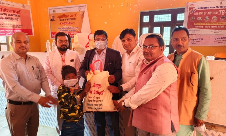 कुशीनगर/दुदही। राष्ट्रीय क्षयरोग उन्मूलन कार्यक्रम के तहत चलाये जा रहे 100 दिवसीय टीबी खोज अभियान में मिले मरीजों को गोद लेकर पोषण की पोटली देने के लिये सीडीओ गुंजन द्विवेदी के प्रेरणा एवं निर्देश के क्रम में शुक्रवार को विकास खण्ड दुदही के ब्लाक सभागार में 125 टीबी रोगियों में प्रोटीनयुक्त पोषण की पोटली वितरित किया गया। अब तक एक ब्लाक में सर्वाधिक टीबी रोगियों को गोद लेने का कार्यक्रम का रिकार्ड बना। कार्यक्रम को सम्बोधित करते हुये मुख्य अतिथि बीएसए डॉ रामजियावन मौर्या ने कहा कि टीबी मुक्त भारत अभियान को सफल बनाने के जनांदोलन जरूरी है। जन जन को इस अभियान को सफल बनाने के लिये जागरूक करना पड़ेगा। उन्होंने कहा कि बेसिक शिक्षा विभाग गोद लेने में अपनी अग्रणी भूमिका निभा रहा है।कार्यक्रम को विशिष्ट अतिथि के रूप सम्बोधित करते हुये खण्ड विकास अधिकारी रामराज कुशवाहा ने कहा कि इस पुनीत कार्य में जो भी व्यक्ति अपनी भूमिका निभा रहा है मैं उसे साधुवाद देते हुये उसके प्रति आभार व्यक्त करता हूँ। उन्होंने कहा कि आप द्वारा दिये गये प्रोटीनयुक्त आहार दवा के साथ खाकर मरीज शीघ्र स्वस्थ हो रहे है। उन्होंने कहा कि शिक्षक इस कार्य में अग्रणी भूमिका निभा रहे है। अध्यक्षता कर रहे खण्ड शिक्षा अधिकारी डॉ प्रभात चन्द्र राय ने कहा कि मरीजों को पोषण उपलब्ध कराने में हमारा विभाग अग्रणी भूमिका में रहेगा। उन्होंने कहा कि आज जो भी व्यक्ति लोग लिया उसके द्वारा रोगियों के उपचार चलने तक प्रतिमाह पोषण की पोटली दी जायेगी। कार्यक्रम का संचालन निक्षय मित्र नोडल आशुतोष कुमार मिश्र ने करते हुये प्रधानमंत्री टीबी मुक्त भारत अभियान के बारे में विस्तारपूर्वक बताया। आगन्तुकों का स्वागत शिक्षक संघ अध्यक्ष अरुणेंद्र राय ने किया तथा आभार ज्ञापन एसटीएस अमित पांडेय ने व्यक्त किया। गोद लेने वालों में डॉ प्रभात चंद्र राय खंड शिक्षा अधिकारी दुदही, अरुणेंद्र कुमार राय (अध्यक्ष,उत्तर प्रदेशिय प्राथमिक शिक्षक संघ दुदही ) रामनिवास जायसवाल (ब्लॉक मंत्री उत्तर प्रदेशिय प्राथमिक शिक्षक संघ दुदही), अशोक यादव, शिव शंकर तिवारी, विद्या सिंह ओम प्रकाश सिंह, अमित श्रीवास्तव ,अवधेश मिश्रा अजय राय ,मनोहर पटेल, नूर मोहम्मद अंसारी, नरेंद्र शर्मा सिद्धार्थ यादव समेत 181 विद्यालयों के प्रधानाध्यापक उपस्थित रहे।