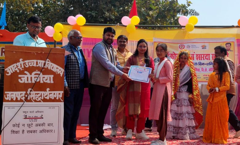 जोगिया/सिद्धार्थनगर। उच्च प्राथमिक विद्यालय जोगिया में बच्चों के समग्र विकास और शैक्षिक उन्नति के लिए वार्षिकोत्सव एवं शारदा संगोष्ठी का आयोजन किया गया। मुख्य अतिथि के रूप में कार्यक्रम का उद्घाटन करते हुए जिला बेसिक शिक्षा अधिकारी प्रकाश सिंह ने बच्चों को प्रेरित करते हुए कहा कि भावी जीवन मे सफलता हासिल करने के लिए कठोर परिश्रम और लगन से नियमित पढ़ाई करने की जरूरत है।कड़ी मेहनत का कोई विकल्प नहीं है।सपने वो नहीं हैं जो हम सोते हुए देखते हैं, सपने वो हैं जो हमें सोने नहीं देते।सफलता उन्हीं को मिलती है जो हार नहीं मानते।विशिष्ट अतिथि खण्ड शिक्षा अधिकारी कमला प्रसाद ने कहा कि जो व्यक्ति अपने कदमों की काबिलियत पर विश्वास रखता है, वही सफलता की ओर बढ़ता है।इसलिए काम ऐसा करें कि पहचान बन जाए।बच्चों द्वारा आकर्षक सांस्कृतिक कार्यक्रम प्रस्तुत किए गए जिसमें बालिका शिक्षा के महत्व,सोशल मीडिया के अतिशय प्रयोग का दुष्प्रभाव, पर्यावरण संरक्षण, देशभक्ति व टीचर्स मोटिवेशनल थीम पर नाट्य प्रस्तुति दी गई।बच्चों द्वारा स्टॉल लगाकर टीएलएम व विज्ञान प्रदर्शनी तथा लर्निंग बाई डूइंग गतिविधियों का प्रस्तुतिकरण किया गया।खेल प्रतियोगिताओं के तहत बच्चों ने वॉलीवाल, खो-खो,दौड़,कबड्डी आदि में अपनी प्रतिभाएं दिखाईं।वर्ष में सर्वाधिक उपस्थिति और सर्वाधिक प्राप्तांक हासिल करने वाले बच्चों और उनके अभिभावकों को सम्मानित किया गया।इस अवसर पर उपस्थित अभिभावकों ने अपने बच्चों के साथ सेल्फी पॉइंट पर यादगार फोटो भी लिए।इस अवसर पर ग्रामप्रधान गौरी प्रसाद,जीजीआईसी प्रवक्ता सरोज यादव, प्रधानाद्यापक रामप्रताप शर्मा, एस आर जी अंशुमान सिंह, ए आर पी अनुपम सिंह, प्रमोद त्रिपाठी, व प्रदीप कुमार पांडेय,शिवकुमार पांडेय,साजदा खातून,रविशंकर विश्वकर्मा, विंदू आदि मौजूद रहे।