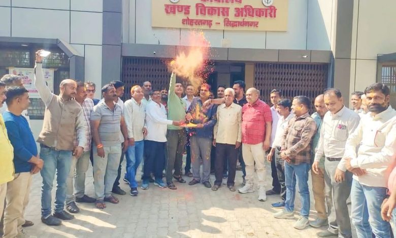 ब्लाक शोहरतगढ़़ पर ग्राम प्रधानों ने खेली होली, मिठाई खिलाकर दी बधाई