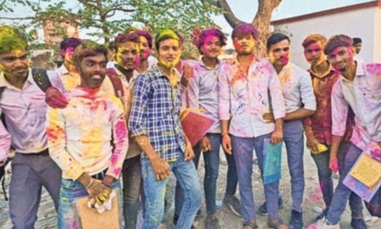 बोर्ड परीक्षा समाप्त होने के बाद परीक्षार्थियों ने खूब उड़ायें गुलाल