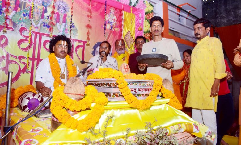 भागवत कथा में पहले दिन भक्ति प्रसंग सुन भावविह्वल हुए श्रोता