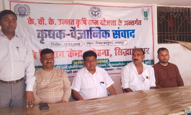 भनवापुर। कृषि विज्ञान केंद्र उन्नत कृषि ग्राम योजना के अंतर्गत चयनित ग्राम पिपरा कानूनगो विकास खण्ड भनवापुर में कृषक वैज्ञानिक संवाद कार्यक्रम आयोजित किया गया। जिसमें कृषि विज्ञान केंद्र के वरिष्ठ वैज्ञानिक एवं अध्यक्ष डॉ ओम प्रकाश ने किसानों को बताया कि किसान खेती में उन्नत तकनीको जैसे फसलों की पंक्तियों में बुवाई, उन्नत बीजों का प्रयोग बीज उपचार एवं पशुपालन द्वारा अधिक लाभ प्राप्त कर सकता है। केंद्र के वैज्ञानिक डॉ शेष नारायण सिंह ने फसलों, सब्जियों एवं पशुओं के विपणन के बारे में बताया उन्होंने कहा कि यदि किसान पाली हाउस का प्रयोग कर समय से पहले सब्जी उत्पादन कर लेता है तो उसे विपणन करने पर अधिक लाभ प्राप्त होगा के वी के के वैज्ञानिक डॉ सर्वजीत ने बताया कि सरसों एवं गेहूं की फसल के बाद मूंग एवं उड़द की खेती करके लाभ प्राप्त कर सकते हैं इन फसलों की बुवाई मार्च के अंत तक अवश्य कर लें केंद्रक वैज्ञानिक डॉ प्रवीण कुमार मिश्रा ने गर्मी में सब्जियों के उत्कृष्ट प्रबंधन बताया एवं बताया कि आम के पौधों में दाना बनने के बाद प्रत्येक 10 दिन के अंतराल में सिंचाई करें केंद्र के वैज्ञानिक डॉ प्रवेश कुमार ने किसानों को बताया कि खेतों में हरी खाद एवं गोबर की खाद से कार्बनिक पदार्थ की मात्रा बढ़ाएं तभी बेहतर उत्पादन होगा एवं फसल अवशेष न जलाएं इस अवसर पर रमन कुमार,अशोक कुमार,शिव प्रकाश, राम नयन इत्यादि कृषक उपस्थित रहे।