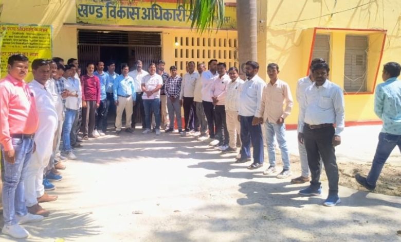 मानदेय के लिए ग्राम रोजगार सेवकों ने बढ़नी ब्लाक पर किया प्रदर्शन