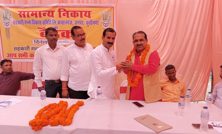 कुशीनगर/कप्तानगंज। केनयूनियन कप्तानगंज के सामान्य निकाय की बैठक में गन्ना समिति के सचिव अध्यक्ष डायरेक्टर सिडिआई डाइरेक्टरोंएवं गन्ना किसान के साथ मिल प्रबंधन कप्तानगंज की संयुक्त बैठक में मिल चलाने की दिशा में एक महत्वपूर्ण बैठक हुई जिसमें किसानों को सुविधा देने के साथ-साथ मिल प्रबंधन द्वारा अस्वस्थ किया गया की अप्रैल महीने की अंतिम तिथि तक गन्ना मूल्य का संपूर्ण भुगतान कर दिया जाएगा तथा गन्ना किसानों को गन्ना बुवाई हेतु गन्ना उपलब्ध कराने गन्ना की दवा और खाद की व्यवस्था के साथ गन्ना किसानों को अन्य सभी सुविधाएं देने के लिए संकल्पित सरकार भारतीय जनता पार्टी को धन्यवाद दिया गया इस उत्साह में माननीय सांसद विजय कुमार दुबे जी के अथक प्रयास की भी सराहना की गई, मुख्य अतिथि आनन्द मिश्र कप्तान गंज मंडल अध्यक्ष के नेतृत्व में शकुशल बैठक सम्पन्न हुआ।