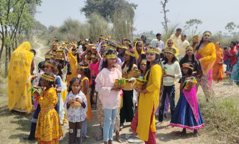 श्रीमद् भागवत कथा के लिए कलश यात्रा बड़े धूम धाम से निकल