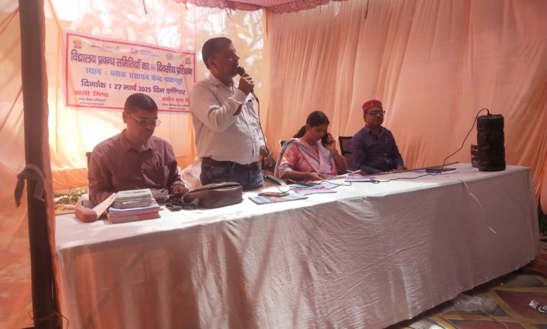 पयागपुर। ब्लॉक संसाधन केंद्र पयागपुर के प्रांगण में परिषदीय विद्यालयों के विद्यालय प्रबंध समिति के अध्यक्षों, समिति के सदस्यों एवं प्रधान शिक्षकों को प्रशिक्षित करने के उद्देश्य से एक दिवसीय कार्यशाला का आयोजन किया गया। कार्यशाला में पयागपुर ब्लॉक में अवस्थित सभी 169 विद्यालयों के प्रधान शिक्षक और एसएमसी अध्यक्षों,नोडल शिक्षक संकुलों एवं एआरपी को आमंत्रित किया गया था, सभी ने प्रतिभाग किया। कार्यशाला की अध्यक्षता बीईओ पयागपुर डाली मिश्रा ने किया। संचालन राजेश कुमार मिश्रा एआरपी ने किया। इस कार्यशाला के जनपदीय प्रशिक्षक प्रतिनिधि राजेश कुमार मिश्र, प्रशिक्षक अतुल कुमार त्रिपाठी,प्रदीप कुमार पांडेय ने उपस्थित जन समुदाय का स्वागत करते हुए कहा कि इस कार्यशाला के आयोजन का उद्देश्य एसएमसी सदस्यों का उन्मुखीकरण करना एवं निपुण विद्यालयों को सम्मानित करना है। सर्वप्रथम सभी को स्टेशनरी वितरित की गयी। एआरपी व जनपदीय प्रशिक्षक प्रतिनिधि राजेश कुमार मिश्र ने कार्यशाला को सम्बोधित करते हुए कहा कि 31 जुलाई 25 को छरू वर्ष की आयु पूरी कर रहे बच्चों का प्रवेश १ अप्रैल से प्रारंभ हो रहा है इसमें समिति का सहयोग महत्त्वपूर्ण है। आप सब अपने स्तर से नामांकन वृद्धि में सहयोग करना सुनिश्चित करेंगे। प्रशिक्षक प्रदीप कुमार पांडेय ने विद्यालय प्रबंध गठन की पूरी प्रक्रिया को विस्तार से बताया। उन्होंने कहा कि सक्रिय विद्यालय प्रबंध समिति ही विद्यालय को निपुण और बेहतर बना सकती है। अतुल कुमार त्रिपाठी ने कहा कि आप सब आज यहाँ उपस्थित है कार्यशाला में, शारदा कार्यक्रम, नामाकन वृद्धि,कायाकल्प, विद्यालय विकास योजना का निर्माण एवं क्रियान्वयन, आदि कार्याे में विद्यालय प्रबंध समिति की भूमिका के बारे में बताया जा रहा है आप इससे अवगत हो और इसका क्रियान्वयन विद्यालयों में कराना सुनिश्चित करेंगे। समिति के कार्याे एवं दायित्वों के बारे में जानकारी देते हुए कहा कि 6 से 14 आयु वर्ग के बच्चों का शत प्रतिशत नामांकन कराने की, मध्यन्ह भोजन ठहराव,आदि की मानीटरिंग करना है द्य अपने अध्यक्षीय उद्बोधन में बीईओ पयागपुर डाली मिश्रा ने कहा कि विद्यालय प्रबंध समिति का कार्य दायित्व वर्तमान समय में बहुत महत्त्वपूर्ण है, सरकारी धन का विद्यालय हित में सदुपयोग करना,कायाकल्प कार्य की निगरानी,छात्र नामांकन ,छात्र उपस्थिति,डीबीटी द्वारा प्राप्त धनराशि का उपयोग, शैक्षिक गुणवत्ता में बृद्धि की मॉनिटरिंग,विद्यालय की सुरक्षा और संरक्षा, आदि में महती भूमिका है। सभी से सहयोग हेतु अनुरोध किया,कार्यक्रम में निपुण घोषित 39 विद्यालयों के प्रधान शिक्षकों की प्रशस्ति पत्र देकर सम्मानित किया गया। इस कार्यक्रम में ,