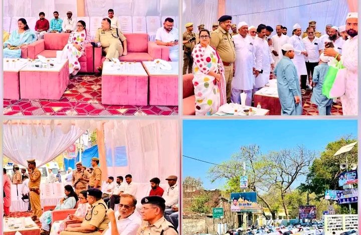 बहराइच | जिलाधिकारी व पुलिस अधीक्षक द्वारा ईदगाह बहराइच में उपस्थित रहकर ईद-उल-फितर पर्व की नमाज को कराया गया सकुशल सम्पन्न कराया गया व आमजन से संवाद स्थापित कर बधाइयां दी गई | जिलाधिकारी बहराइच मोनिका रानी व पुलिस अधीक्षक द्वारा ईद-उल-फितर पर्व को सौहार्दपूर्ण वातावरण में सम्पन्न कराने के दृष्टिगत सम्पूर्ण जनपद में पर्याप्त सुरक्षा प्रबंध किये गये, जिसके चलते जनपद बहराइच में ईद की नमाज को सकुशल सम्पन्न कराया गया। ईद के अवसर पर जिलाधिकारी व पुलिस अधीक्षक द्वारा ईदगाह बहराइच, सलारगंज, थाना दरगाह शरीफ में उपस्थित रहकर ईद की नमाज को सकुशल सम्पन्न कराया गया तथा नमाज उपरान्त आमजन से सीधा संवाद स्थापित करते हुए सभी को ईद की बधाईयां दी गयीं। इस अवसर पर पुलिस व प्रशासनिक अधिकारी व अन्य गणमान्य व्यक्ति तथा आमजन उपस्थित रहे।