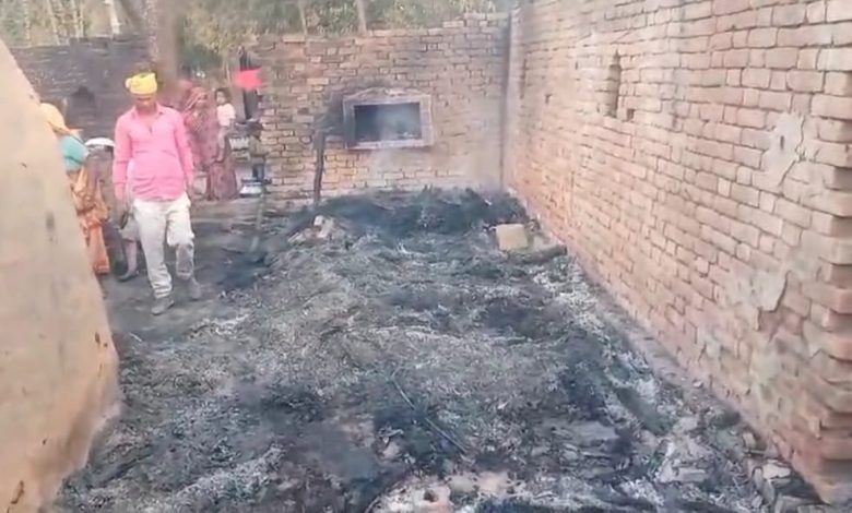 अज्ञात कारणों से फूस के तीन मकानों में लगी आग, मवेशियों को बचाने के लिए गए दादा और पोता भी झुलसे