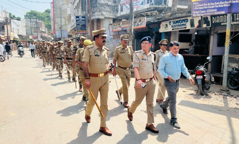 बहराइच। नवरात्रि, रामनवमी, जुम्मे की नमाज व वक्फ़ बिल के दृष्टिगत जनपद में शान्तिं, सुरक्षा एवं कानून व्यवस्था बनाए रखने तथा आम जनमानस में सुरक्षा की भावना व पुलिस के प्रति विश्वास बनाये रखने हेतु अपर पुलिस अधीक्षक नगर रामानन्द कुशवाहा द्वारा क्षेत्राधिकारी नगर रमेश चन्द्र पाण्डेय व प्रभारी महिला थाना, प्रभारी थाना कोतवाली नगर मय पुलिस बल एवं अर्धसैनिक बल के साथ शहर के प्रमुख बाजारों, मुख्य मार्गों, भीड़ – भाड़ वाले स्थानों तथा मिश्रित आबादी वाले संवेदनशील क्षेत्रों में फ्लैग मार्च/पैदल गस्त किया गया।
