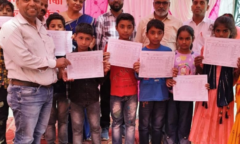 बच्चों को वितरित किए गए अंक पत्र