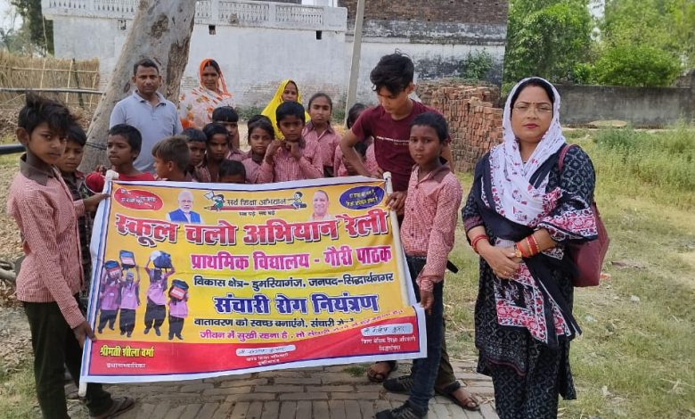 संचारी रोग नियंत्रण अभियान एवं स्कूल चलो अभियान की निकाली गई रैली