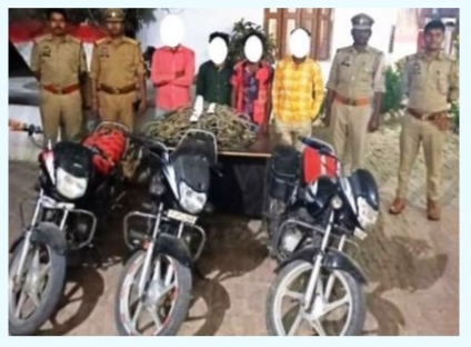 हुजूरपुर/ बहराइच। प्रभारी निरीक्षक थाना हुजूरपुर के नेतृत्व में गठित टीम द्वारा दिनांक 07.04.2025 को सायं करीब 04.00 बजे थाना क्षेत्र के ग्राम लम्बरदारपुरवा दा० जगतापुर में सूखी नहर में एक नीलगाय कुछ अज्ञात लोगों द्वारा काट दिये जाने की सूचना जरिये मुखबिर प्राप्त हुई , जिस पर हुजूरपुर पुलिस तथा वन विभाग की संयुक्त टीम द्वारा मौके पर पहुंचकर मौके से एक प्लास्टिक की बोरी में बंधा हुआ नीलगाय का कुछ मांस व अवशेष तथा एक बोरी में नीलगाय को पकड़ने की रस्सी तीन मोटर साइकिले जिनके बरामद हुई थी, मौके से अभियुक्तगण भाग गये थे। फर्द बरामदगी के आधार पर मु0अ0सं0 92/25 अन्तर्गत धारा 9,51,39 वन्य जीव संरक्षण अधिनियम बनाम अज्ञात पंजीकृत किया गया था। घटना का सफल अनावरण व अभियुक्तों की गिरफ्तारी हेतु टीम गठित की गयी, गठित पुलिस टीम द्वारा कार्यवाही करते हुए 24 घंटे के अंदर घटना का सफल अनावरण करते हुए 4 अभियुक्तगण को ग्राम ससना ईदगाह के पास से गिरफ्तार किय़ा गया और उनकी निशानदेही पर नीलगाय काटने में प्रयुक्त औजार एक बांका व एक चाकू को बरामद किया गया । विधिक कार्यवाही करते हुए अभियुक्तगणों को न्यायालय भेज दिया गया।