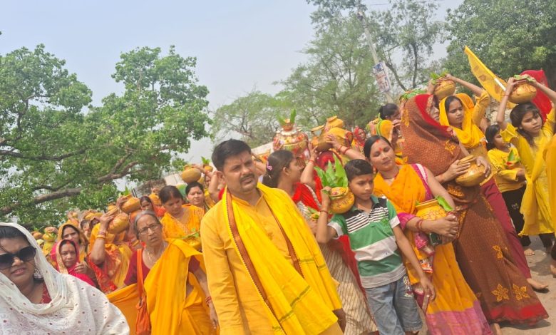 पयागपुर/बहराइच। पांच दिवसीय गायत्री महायज्ञ एवं प्रज्ञा पुराण कथा का शुभारंभ भव्य कलश शोभायात्रा के साथ हुआ। नगर क्षेत्र स्थित धर्म नगर कान्धी कुइयाँ में गायत्री परिवार द्वारा आयोजित विराट पांच कुंडीय गायत्री महायज्ञ एवं संगीतमयी प्रज्ञा पुराण कथा का शुभारंभ बुधवार को भव्य कलश शोभायात्रा के साथ शुरू हुआ। सैकड़ों पीत वस्त्र धारी महिलाओं ने सिर पर कलश रखकर ष्जागेगी भाई जागेगी,नारी शक्ति जागेगीष्हम बदलेंगे,युग बदलेगा जैसे उद्घोष के साथ समूचे कान्धी कुइयाँ वार्ड का भ्रमण कर कथा स्थल पहुंची। जहां पर वैदिक मंत्रोच्चार के साथ कलश को स्थापित किया गया। गायत्री परिवार के राकेश कुमार तिवारी ने बताया की प्रत्येक दिवस सुबह महायज्ञ के साथ संस्कार के कार्यक्रम तथा रात्रि में शांतिकुंज हरिद्वार से आये कथावाचक पण्डित अनिलेश तिवारी द्वारा संगीतमय प्रज्ञा पुराण कथा होगी।कलश यात्रा में गायत्री परिवार के एस पी त्रिपाठी, प्रभाकर सिंह,ज्ञान प्रकाश शुक्ला,ऋषिकेश तिवारी सहित सैकड़ों महिलाएं मौजूद रही।