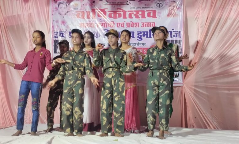 डुमरियागंज। ब्लॉक संसाधन केंद्र डुमरियागंज के परिसर में स्थित पूर्व माध्यमिक विद्यालय में वार्षिकोत्सव एवं सम्मान समारोह का आयोजन किया गया। जिसमें बच्चों ने सांस्कृतिक कार्यक्रम प्रस्तुत कर सभी का मन मोह लिया। कार्यक्रम में उत्कृष्ट योगदान देने वाले बच्चों को पुरस्कृत किया गया। कार्यक्रम का उद्घाटन पीपुल्स इंटर कॉलेज डुमरियागंज के प्रधानाचार्य शिवकुमार पांडे व सभासद उमाशंकर गौड़ ने दीप प्रज्वलित करके किया। कार्यक्रम की शुरुआत सरस्वती वंदना एवं स्वागत गीत से बालिकाओं द्वारा किया गया। इसके बाद अपने मुख्य अतिथि संबोधन में शिवकुमार पांडेय ने कहा कि शिक्षा सभी का अधिकार है अपने बच्चों को शिक्षा की मुख्य धारा से जोड़कर बच्चों के सुनहरे भविष्य का निर्माण करें। एक शिक्षक छात्र जीवन में बच्चों को संवारने का कार्य करता है। हमें अपने बच्चों को विद्यालय प्रतिदिन भेजना चाहिए। इस मौके पर प्रधानाध्यापक नसीम अहमद ने कहा कि विद्यालय के अलग-अलग कक्षाओं में उपस्थिति में सबसे ज्यादा प्रतिशत लाने वाले बच्चों वह उत्कृष्ट योगदान देने वाले बच्चों को पुरस्कृत किया गया है। उन्होंने यह भी बताया कि नामांकन प्रक्रिया शुरू हो चुका है अपने बच्चों का नामांकन विद्यालय में अवश्य कराए। इस मौके पर धर्मराज दुबे, दुर्गेश मिश्रा ,रामविलास यादव, कमल मोहनी, नीलम गुप्ता ,संतोष सिंघानिया , अमित सिंह परमार, विमलेश पांडे, मोहम्मद सलीम, बशीर फारुकी, करीमुल्लाह, किशोर, सुनील मिश्रा, गणेश गौड़,रामनारायण दुबे आदि लोग मौजूद रहे।