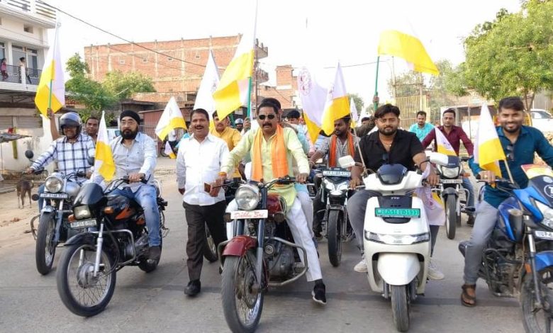 व्यापारियों ने निकाली बाइक रैली, व्यापारी महाकुंभ में आने का आवाह्न