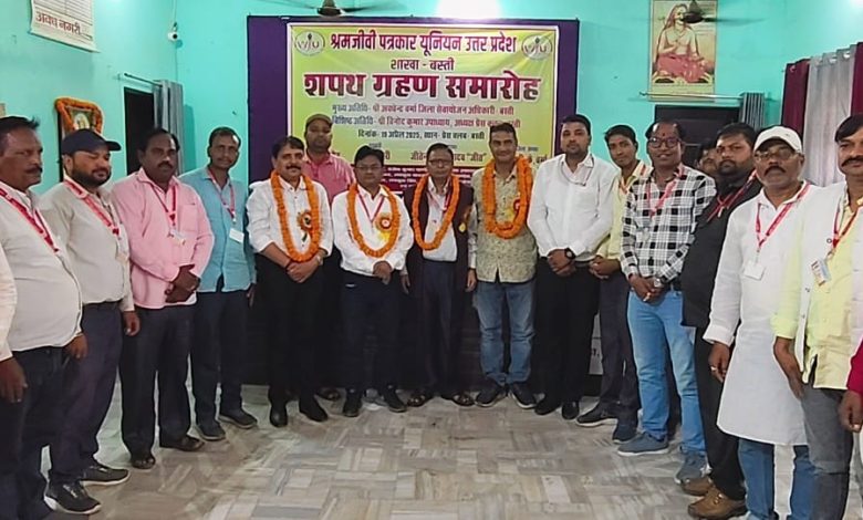 बस्ती। श्रमजीवी पत्रकार यूनियन उत्तर प्रदेश के बस्ती शाखा के पदाधिकारियों और सदस्यों का शपथ ग्रहण समारोह और परिचय पत्र का वितरण जिलाध्यक्ष डा. वी0के0 वर्मा के संयोजन में किया गया। डा. वर्मा ने कहा कि पत्रकारों के पास यूनियन का परिचय पत्र होना आवश्यक है जिससे वे अपने दायित्वों का पालन निष्ठापूर्वक कर सके। पदाधिकारियों ने जो शपथ लिया है उसका पालन करें जिससे पत्रकारिता की गौरव गरिमा बनी रहे। पत्रकारिता के अपने दायित्व हैं, पत्रकारों को इस भूमिका पर खरा उतरना होगा। वे इस क्षेत्र की पवित्रता और विश्वास को बचाये बनाये रखने में योगदान दें। पदाधिकारियों को शपथ ग्रहण कराते हुये प्रभारी जिला सूचना अधिकारी अवधेन्द्र वर्मा ने कहा कि पत्रकारों का दायित्व विशेष महत्वपूर्ण है। जिलाध्यक्ष डा. वी.के. वर्मा, संरक्षक डॉ. रामकृष्ण लाल ‘जगमग’ राकेश गिरी महामंत्री, जितेन्द्र यादव ‘जीत’ कोषाध्यक्ष, अरूण कुमार, अजय श्रीवास्तव उपाध्यक्ष, , रितिक कुमार सचिव और कार्यकारिणी सदस्य के रूप में राजेश कुमार पाण्डेय , सर्वेश कुमार श्रीवास्तव, राकेश त्रिपाठी, बबुन्दर यादव, लवकुश यादव, अमन खान, सरताज आलम, दीपक द्विवेदी, देवेन्द्र पाण्डेय, श्रीप्रकाश श्रीवास्तव आदि को शपथ दिलाया गया। संरक्षक डॉ. रामकृष्ण लाल ‘जगमग’, प्रेस क्लब अध्यक्ष विनोद उपाध्याय ने कहा कि ज्ञान पत्रकारिता की आवश्यक शर्त है। निरन्तर अध्ययन आवश्यक है। जिलाध्यक्ष डा. वी.के. वर्मा ने कहा कि उनका प्रयास होगा कि पत्रकारों की समस्याओं का प्रमुखता से समाधान कराया जाय। कार्यक्रम में लवकुश सिंह, राकेश तिवारी, राजेन्द्र उपाध्याय, राम विलास कसौधन, फैय्याज, अनिल कुमार श्रीवास्तव, श्री प्रकाश गुप्ता, मो. कलीम, मो. रिजवान, सुमित जायसवाल, दिलीप चन्द्र पाण्डेय, कपीश मिश्र, अनूप मिश्र, आशुतोष नारायण मिश्र, शिवेश शुक्ल, जितेन्द्र कुमार, महेन्द्र प्रताप सिंह, अमर सोनी, अनिल पाण्डेय, अखिलेश कुमार यादव, शकील खान, सन्तोष कुमार, मो. आलम, दिनेश मिश्र, डा. हेमन्त पाण्डेय, जितेन्द्र कुमार, जय प्रकाश गोस्वामी, इन्द्रभूषण, राम वेलास आदि उपस्थित रहे।