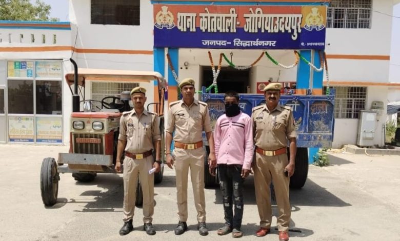 सिद्धार्थनगर। पुलिस अधीक्षक सिद्धार्थनगर डॉ0 अभिषेक महाजन द्वारा अपराध एवं अपराधियो की रोकथाम हेतु चलाये जा रहे अभियान के तहत के आदेश के क्रम में एवं सिद्धार्थ अपर पुलिस अधीक्षक सिद्धार्थनगर सिद्धार्थ के कुशल निर्देशन व क्षेत्राधिकारी बांसी मयंक द्विवेदी के कुशल पर्यवेक्षण एवं थानाध्यक्ष जोगिया उदयपुर अनूप कुमार मिश्र के नेतृत्व में थाना जोगिया उदयपुर जनपद सिद्धार्थनगर पर पंजीकृत मु0अ0सं0 57/2025 धारा 303(2)/317(2) भारतीय न्याय सहिंता-2023 से सम्बन्धित प्रकाश में आये 01 नफर चोर (अभियुक्त) को बहद ग्राम जगमोहनी-सनई मार्ग विनयका गांव के पास से गिरफ्तार किया गया। वहीं अभियुक्त के कब्जे से एक अदद ट्रैक्टर व एक अदद ट्राली मुकदमा उपरोक्त से सम्बन्धित माल के साथ बरामद किया। गिरफ्तारी व बरामदगी के आधार पर मुकदमा उपरोक्त में धारा 317(2) बीएनएस की बढ़ोत्तरी करते हुए नियमानुसार आवश्यक विधिक कार्यवाही पूर्ण कर अभियुक्त को न्यायालय भेजा गया। वहीं गिरफ्तार अभियुक्त दीपक यादव पुत्र इन्द्रजीत यादव निवासी ग्राम डुमरिया थाना कोतवाली सिद्धार्थनगर जनपद सिद्धार्थनगर है। इस दौरान गिरफ्तारी करने वाली पुलिस टीम में उप निरीक्षक मुस्तकीम अंसारी, कांस्टेबल विरेन्द्र यादव व कांस्टेबल प्रदीप उपाध्याय मौजूद रहें।