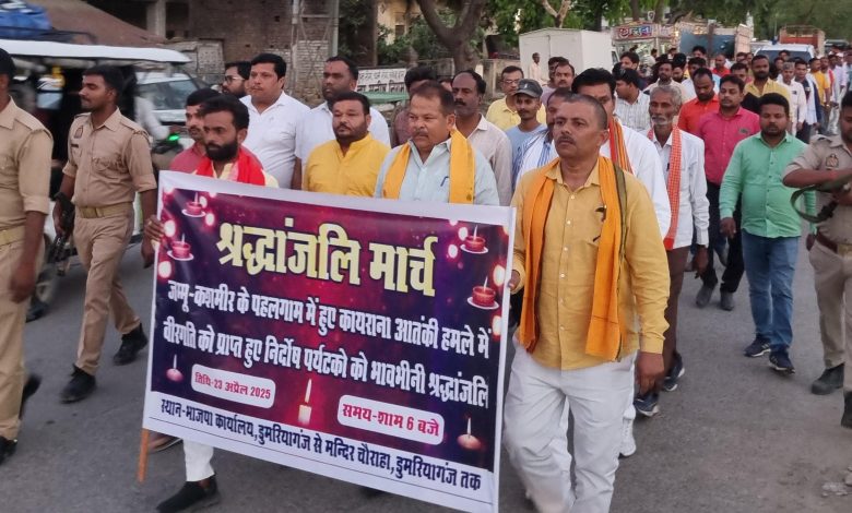 पहलगाम में हुए आतंकी हमले के विरोध में निकाली गई मौन यात्रा