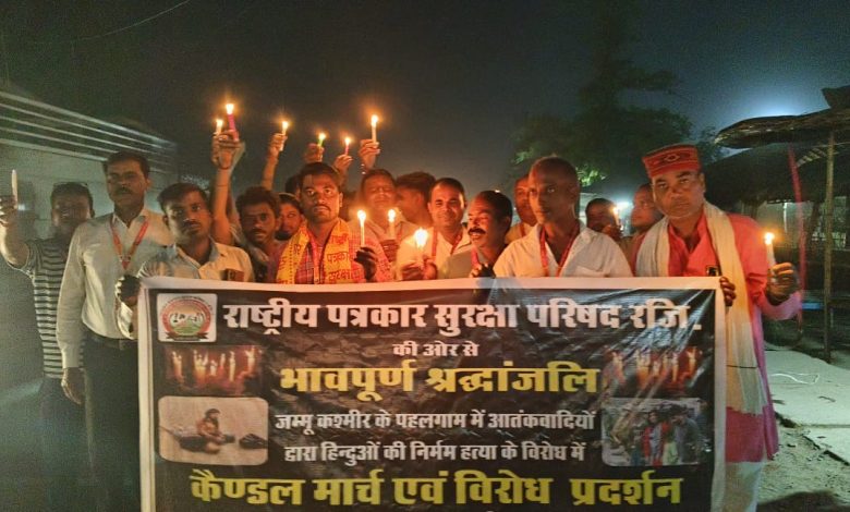जम्मू एंड कश्मीर के पहलगाम में हुए आतंकी हमले को लेकर पत्रकारो ने निकाला कैंडल मार्च