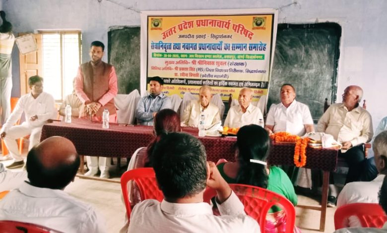 सिद्धार्थनगर। उत्तर प्रदेश प्रधानाचार्य परिषद जनपदीय इकाई सिद्धार्थनगर द्वारा सेवानिवृत्ति तथा नवागत प्रधानाचार्यों का सम्मान दिनांक 28 अप्रैल 2025 को जय किसान इंटर कॉलेज सकतपुर सनई में किया गया। इस अवसर पर मुख्य अतिथि प्रदेशीय संरक्षक श्रीनिवास शुक्ल,विशिष्ट अतिथि जिला विद्यालय निरीक्षक सिद्धार्थनगर प्रकाश सिंह ,प्रदेशीय महामंत्री डॉ रविंद्र त्रिपाठी रहे कार्यक्रम का प्रारंभ माता सरस्वती के चित्र पर मुख्य अतिथि द्वारा तथा विशिष्ट अतिथि द्वारा माल्यार्पण कर किया गया। जिला कार्यकारिणी के जिला अध्यक्ष रमाकांत द्विवेदी ,कार्यकारी अध्यक्ष गोपेश्वर चौबे ,जिला मंत्री बृजेश द्विवेदी, कोषाध्यक्ष शैलेन्द्र कुमार शर्मा ,संगठन मंत्री डॉक्टर शेषनारायण पाण्डेय ,श्रीमती अंजू मिश्र तथा अन्य पदाधिकारियों द्वारा मुख्य अतिथि, विशिष्ट अतिथियों तथा सेवानिवृत्त प्रधानाचार्य शहीद ए आजम भगत सिंह उच्चतर माध्यमिक विद्यालय बजहा तेज बहादुर चौधरी,प्रधानाचार्य पीपुल्स इंटर कालेज डुमरियागंज चिंताराम, प्रधानाचार्या राजकीय बालिका इंटर कॉलेज तेतरी बाजार श्रीमती कल्पना पाण्डेय का माल्यार्पण ,अंगवस्त्र , डायरी और पेन से स्वागत और सम्मान किया गया ,साथ ही सेवानिवृत प्रधानाचार्य के स्थान पर कार्यभार ग्रहण करने वाले प्रधानाचार्यों क्रमशः श्रीमती हिना ,शिवकुमार पाण्डेय,श्रीमती शिवा शर्मा का माल्यार्पण कर स्वागत किया गया।कार्यक्रम को संबोधित करते हुए मुख्य अतिथि श्रीनिवास शुक्ल ने कहा प्रधानाचार्य सेवानिवृत्त नहीं होता है सिर्फ उसकी भूमिका बदल जाती है अब उनका दायरा एक विद्यालय और विभाग तक ना हो करके पूरे समाज में हो जाता है उसके गुणों का लाभ अब पूरे समाज को मिलेगा ,उनके ज्ञान के प्रकाश से समाज आलोकित होगा ।विशिष्ट अतिथि जिला विद्यालय निरीक्षक प्रकाश सिंह ने सेवानिवृत्त प्रधानाचार्याे को शिक्षा विभाग के लिए उनके किए गए कार्यों की सराहना करते हुए जीवन के नए सामाजिक जिम्मेदारियों के सफल निर्वहन के लिए शुभकामनाएं दिया,नए प्रधानाचार्यों से निष्ठा और लगन से विद्यालय के शैक्षणिक माहौल में उत्तरोत्तर प्रगति करने की बात कही,प्रदेशीय महामंत्री डॉ रवीन्द्र त्रिपाठी ने सेवानिवृत्त प्रधानाचार्यों स्वस्थ खुशहाल मंगलमई जीवन की कामना किया , वर्तमान में प्रधानाचार्यों के समक्ष उपस्थित चुनौतियों और और उससे निपटाने के लिए प्रशासन और समाज दोनों को सहयोग करने की अपील किया।कार्यक्रम को राष्ट्रपति पुरस्कार प्राप्त प्रधानाचार्य चन्द्र प्रकाश श्रीवास्तव ,जिलामंत्री बृजेश द्विवेदी ने भी संबोधित किया,जिलाध्यक्ष रमाकांत द्विवेदी ने आए हुए अतिथियों तथा प्रधानाचार्य गणों का आभ