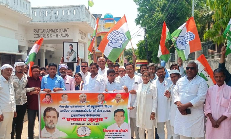 जातिगत जनगणना की मांग पूरी होने पर कांग्रेस नेताओं ने जुलूस निकालकर जताया आभार